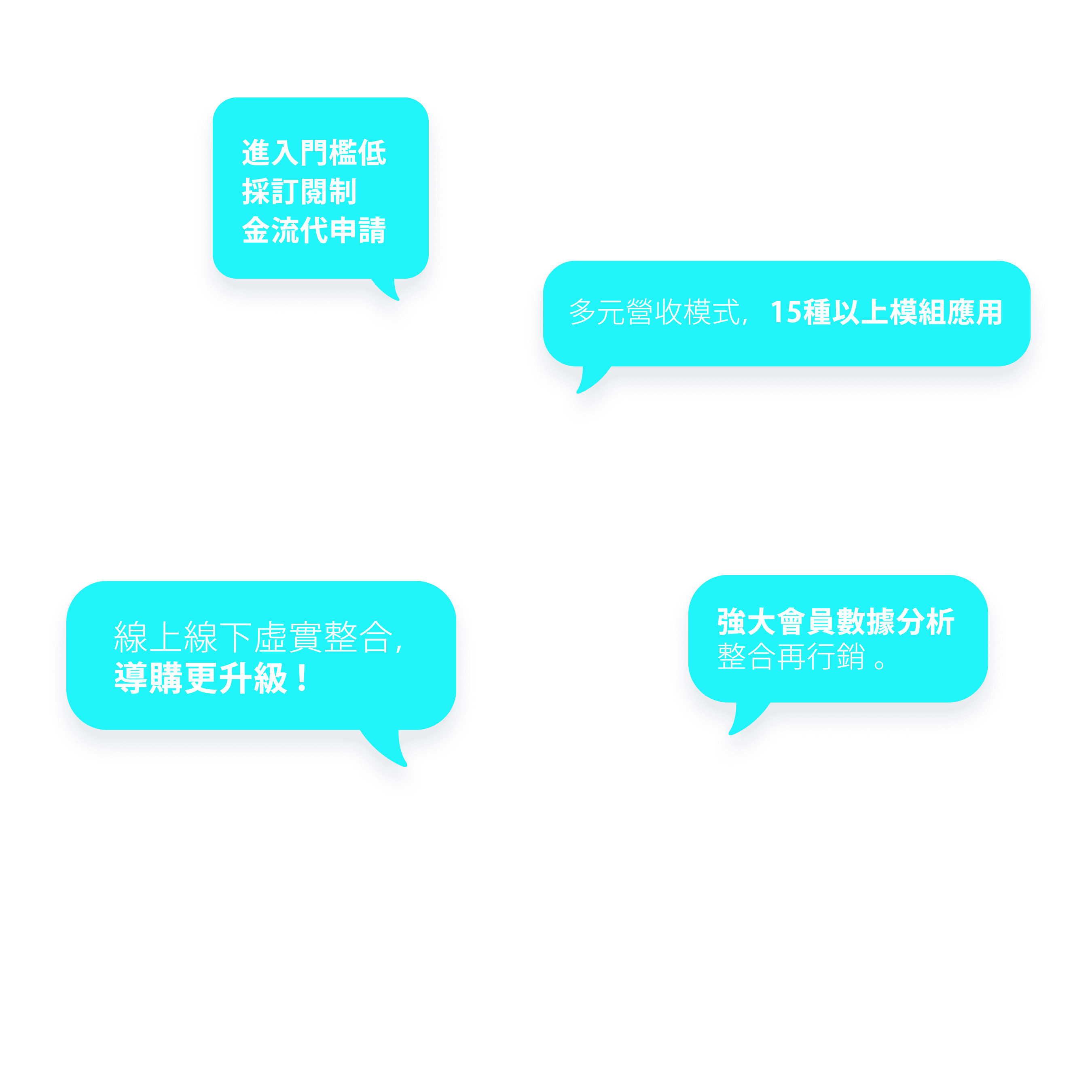 整合龐大消費需求、掌握每個互動與轉換,長期累積會員,解決流量變現難題、增加品牌延續性。